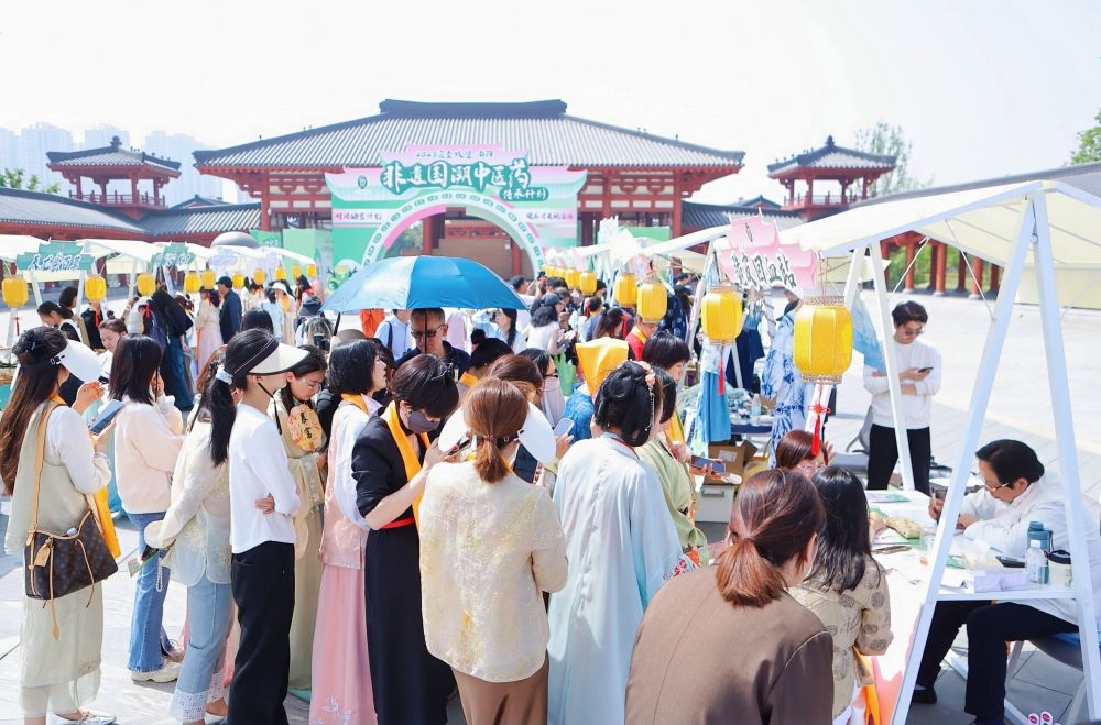 2025年4月10日,群眾在南陽(yáng)市醫(yī)圣文化園體驗(yàn)中醫(yī)義診。新華社記者 吳剛 攝
