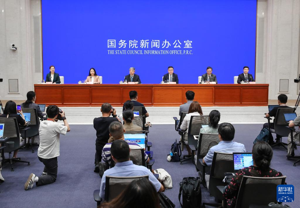 7月4日,國務(wù)院新聞辦公室在北京舉行國務(wù)院政策例行吹風會,商務(wù)部部長助理唐文弘,上海市委常委、常務(wù)副市長吳偉和商務(wù)部自貿(mào)區(qū)港建設(shè)協(xié)調(diào)司司長孟華婷,中國人民銀行研究局負責人紀敏,海關(guān)總署自貿(mào)區(qū)和特殊區(qū)域發(fā)展司負責人杜朝新介紹中國(上海)自由貿(mào)易試驗區(qū)全面對接國際高標準經(jīng)貿(mào)規(guī)則試點成效及復制推廣有關(guān)情況,并答記者問。新華社發(fā)(劉健 攝)