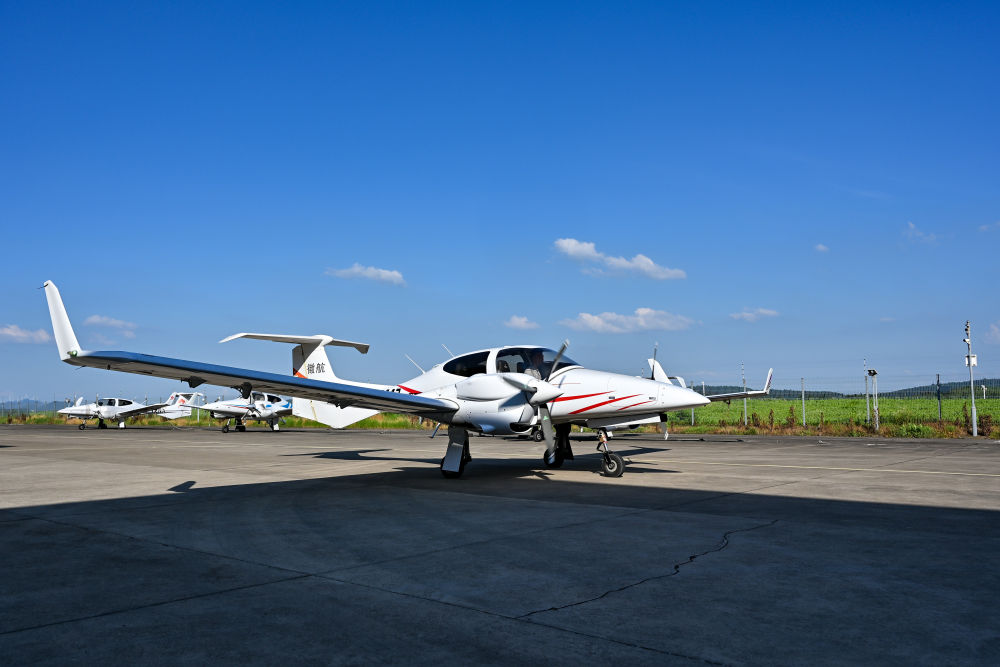 7月3日,在安徽省蕪湖市灣沚區(qū)航空小鎮(zhèn),一架通航飛機準(zhǔn)備起飛。新華社記者 張鋮 攝
