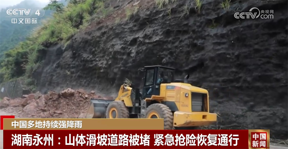 湖南永州:山體滑坡道路被堵 緊急搶險恢復(fù)通行