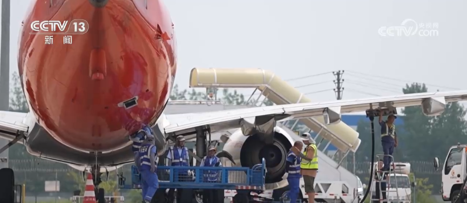 7月16日上午,成都市氣象臺發(fā)布了高溫紅色預(yù)警信號,多地最高氣溫超過40℃。在成都雙流國際機場的停機坪,地表溫度甚至逼近50℃。在這樣的酷熱中,為保障暑期客貨運航班運輸安全有序,機場一線的地勤人員頂著高溫堅守崗位,通過倒班協(xié)作,保障暑期運輸。