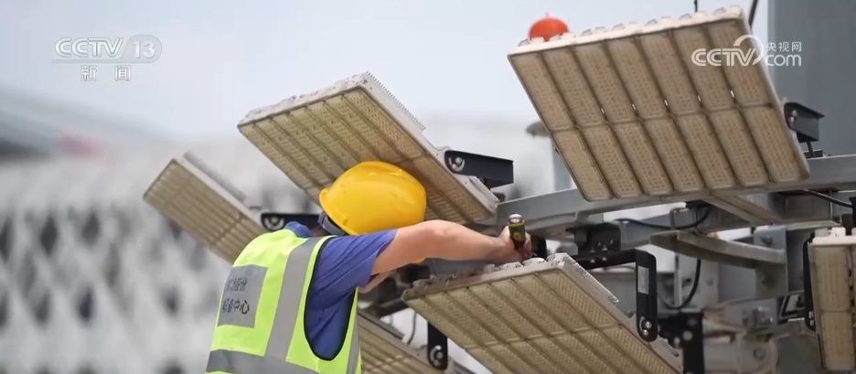 記者來到成都雙流國際機場的停機坪上,氣溫預(yù)報38℃,但是在現(xiàn)場感受到的體感溫度其實已遠遠超過了40℃。記者在地面上放了一個溫度計,5分鐘后顯示的溫度已經(jīng)逼近50℃了,但是記者在現(xiàn)場看到停機坪上依然有很多地勤工作人員在搬運相應(yīng)的這些物資,這些貨物在運上飛機之后啟程飛往仰光。很多工作人員都穿著防曬的帽子、袖套,這些都是為了在酷暑之下減少體感的難受程度。