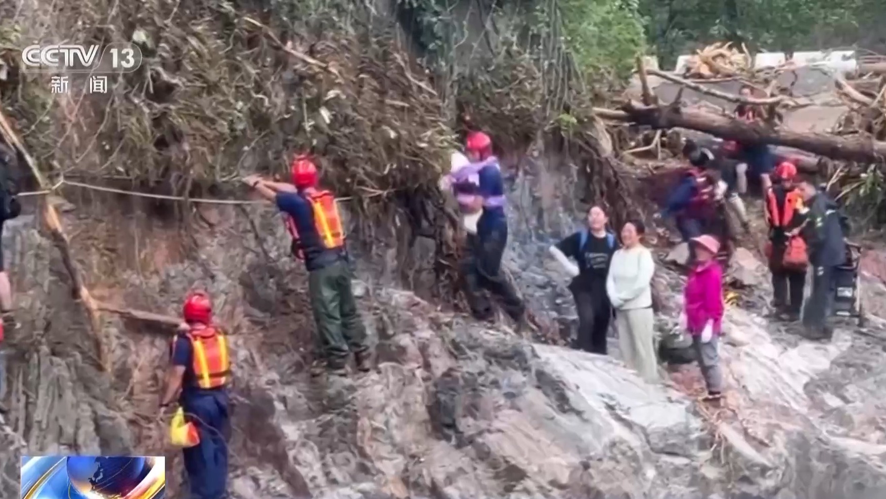 受困的人員中,有一名4個月大嬰兒,由于沒有母乳,奶粉也吃完了,必須轉(zhuǎn)運(yùn)。救援人員或抬或抱,小心翼翼地護(hù)送嬰兒渡過險段。