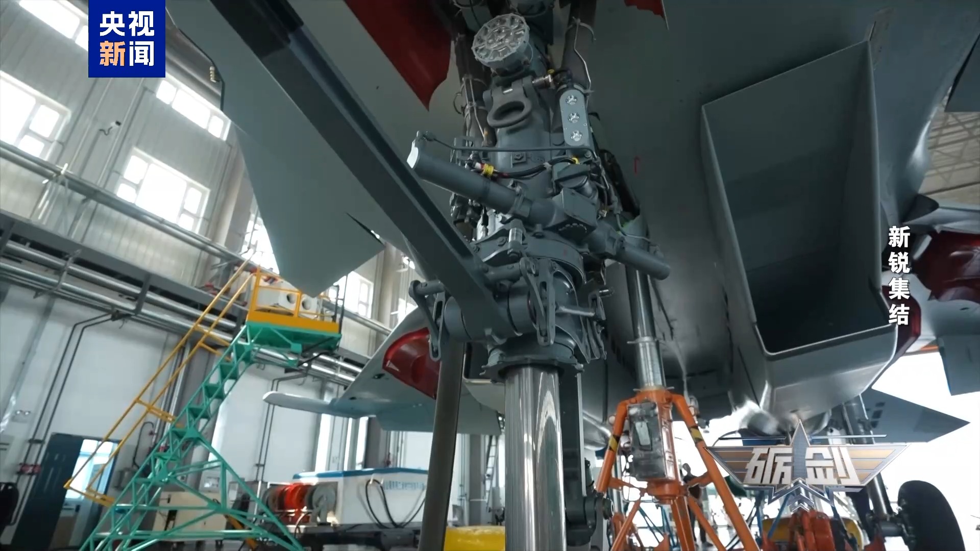 空軍特級飛行員 殲-15首飛試飛員 李國恩:起落架設計還是比較復雜的。一是對強度的考驗,二是在前起落架觸及甲板的時候,能量比較好地得到釋放緩沖,這是前起落架設計的一個難點。你可以看到與其他的陸基飛機比,這個起落架要粗。我國工業(yè)水平整體也在進步,未來我們希望它結(jié)構(gòu)要細一點、輕一點,飛機越輕,空中的性能越好。