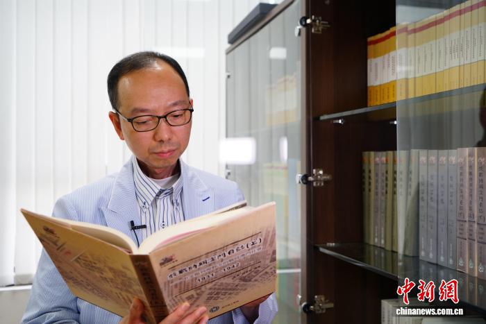 7月24日,澳門理工大學(xué)人文及社會科學(xué)學(xué)院院長、澳門口述歷史協(xié)會會長林發(fā)欽翻閱《抗戰(zhàn)時期澳門日志(上)》。 中新社記者 鄭嘉偉 攝