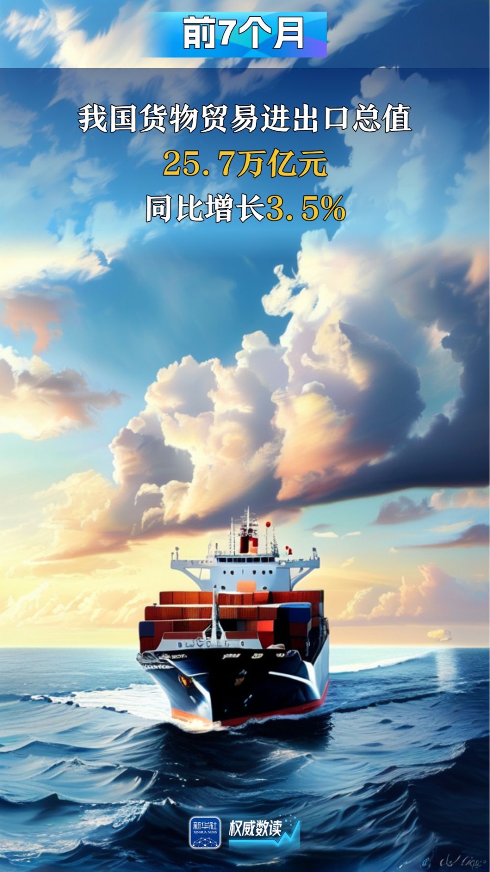 海關(guān)總署7日發(fā)布數(shù)據(jù)顯示,今年前7個月,我國貨物貿(mào)易進(jìn)出口總值25.7萬億元人民幣,同比增長3.5%。面對復(fù)雜外部環(huán)境,我國外貿(mào)運行保持向上向好勢頭,經(jīng)濟運行穩(wěn)中有進(jìn)。