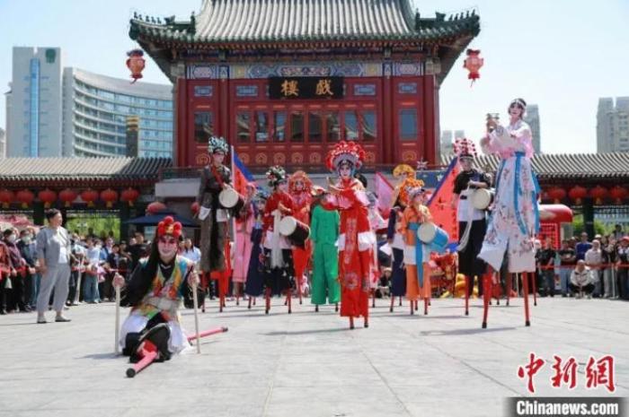 圖為“五一”假期首日,民眾在天津古文化街宮前廣場觀看民俗花會表演。魏進 攝