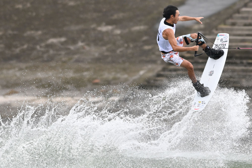 8月10日,日本選手手塚翔太在2025年成都世運會男子尾波滑水自由式比賽中。新華社記者 陳振海 攝