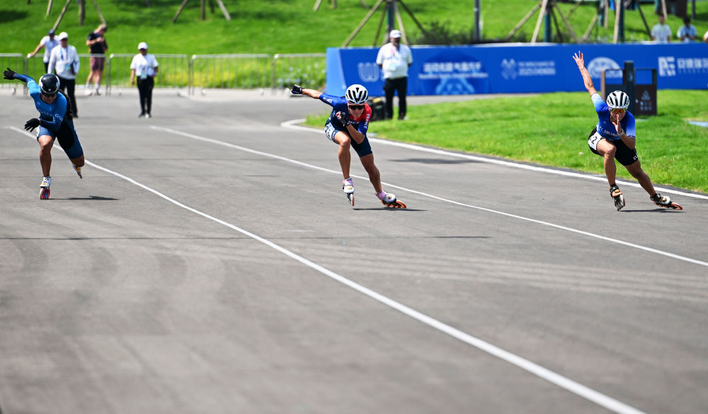8月13日,2025年成都世運會速度輪滑公路賽(100米爭先)女子決賽在成都舒悅公園舉行。新華社記者 謝劍飛 攝
