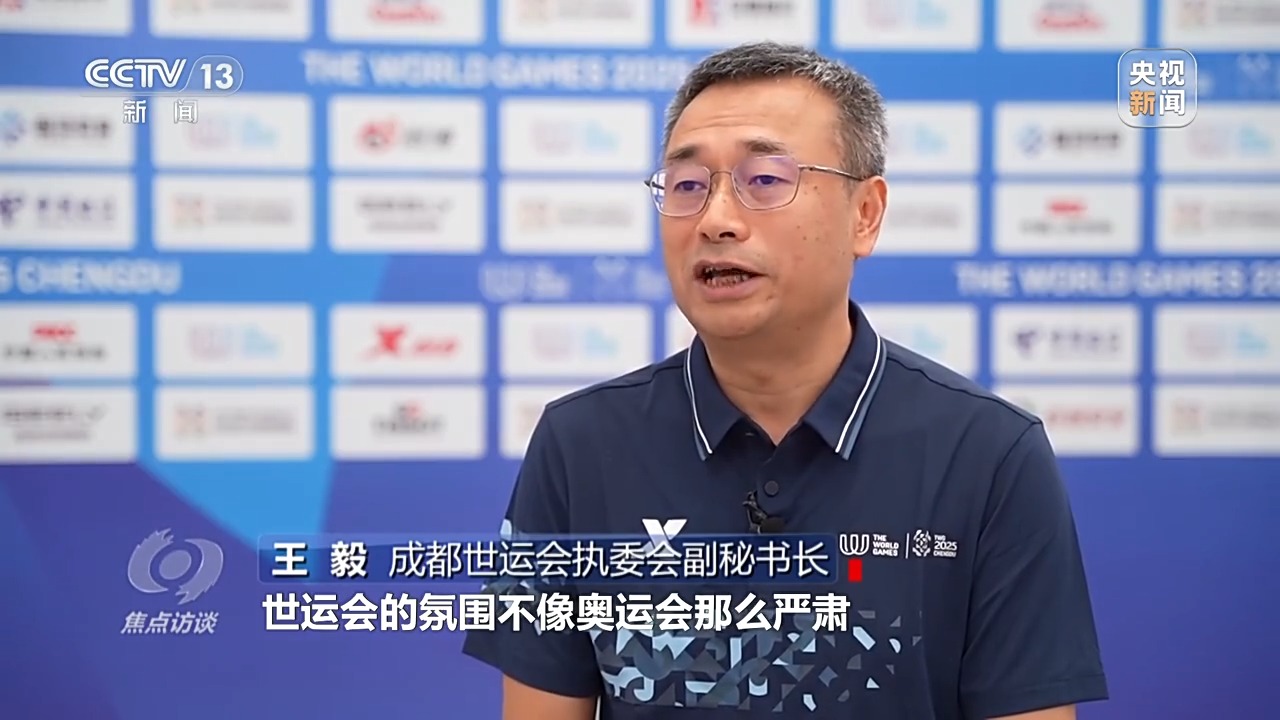 成都世運(yùn)會執(zhí)委會副秘書長 王毅:世運(yùn)會聚焦的點(diǎn)主要是非奧比賽項(xiàng)目,世運(yùn)會的氛圍不像奧運(yùn)會那么嚴(yán)肅,既有競技體育的對抗性,也強(qiáng)調(diào)趣味性和參與感,這是一個融合了傳統(tǒng)與現(xiàn)代的體育嘉年華。