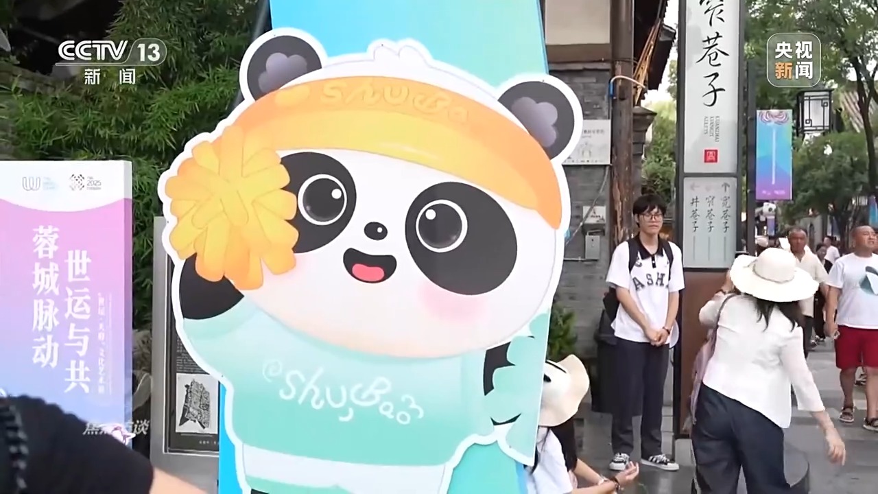 成都寬窄巷子依托世運(yùn)吉祥物“蜀寶”“錦仔”變身世運(yùn)主題街,世運(yùn)吉祥物,搭配主題打卡墻、沿街形象架等氛圍裝置,生動展現(xiàn)“世運(yùn)雙寶”可愛形象。在寬窄巷子,還專門設(shè)置了“世運(yùn) 天府”文化藝術(shù)展。