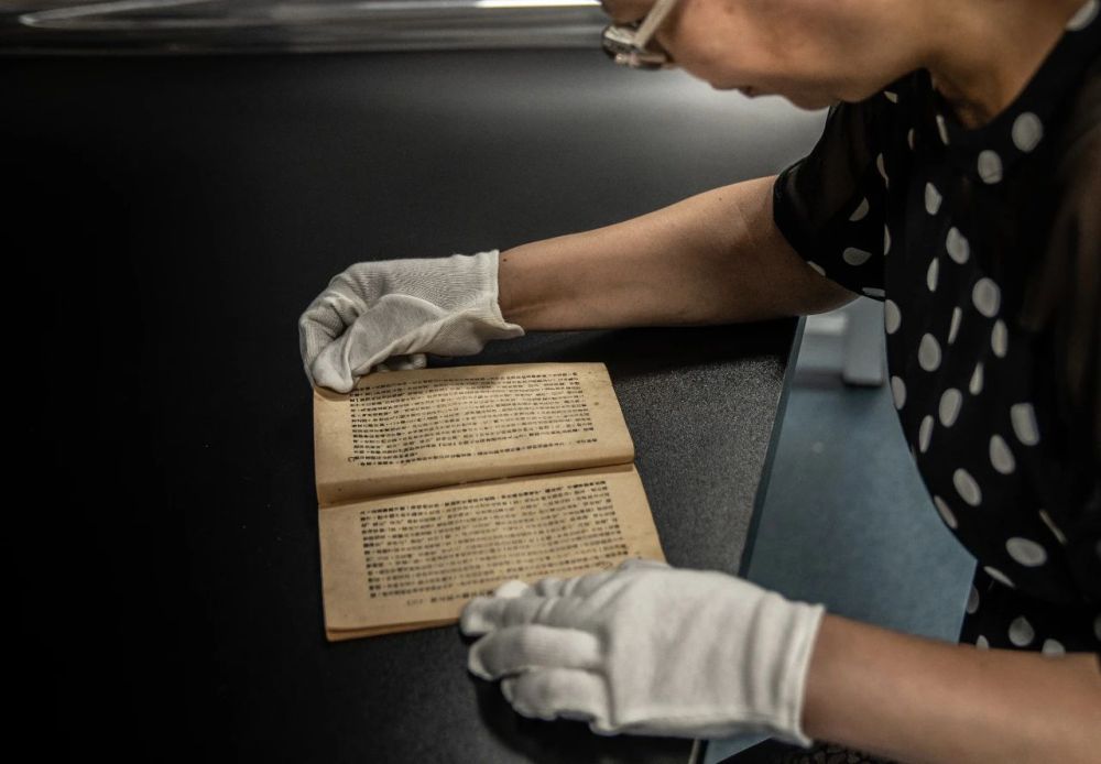 8月4日,遼沈戰(zhàn)役紀(jì)念館工作人員展示館內(nèi)收藏的穆青同志采寫的《東北抗日聯(lián)軍斗爭(zhēng)史略》。(遼沈戰(zhàn)役紀(jì)念館供圖)