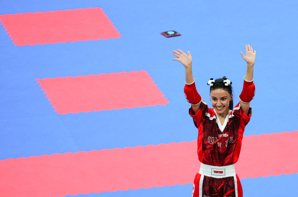 土耳其姑娘克倫奇是重度熊貓愛好者,贏下自由搏擊女子半接觸50公斤級半決賽后,她從容摘下護具,拿出一枚熊貓發(fā)卡戴在頭上。而她的背包里,足足塞了13個熊貓紀念品。