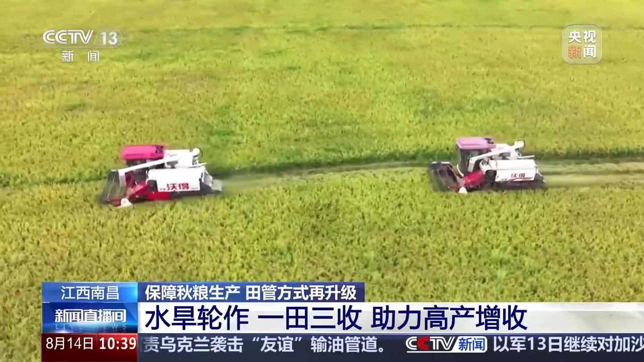 在江西南昌聯(lián)圩鎮(zhèn),一茬茬飽滿的稻穗被迅速收割、脫粒,裝入運(yùn)輸車輛。而在收割機(jī)作業(yè)的田塊旁,翻耕起壟機(jī)正加緊作業(yè),農(nóng)戶們忙著清溝除雜、整理田地,為播種優(yōu)質(zhì)高產(chǎn)大豆做足準(zhǔn)備。今年當(dāng)?shù)夭捎?strong>水旱輪作、一田三收的種植方式,春季種水稻,初秋收完水稻后搶種大豆,秋末大豆收獲后緊接著種植耐寒蔬菜或油菜,三季作物茬口緊密銜接,全年無閑田。同時(shí),通過推廣良種、測(cè)土配方施肥等技術(shù),確保每種作物都能優(yōu)質(zhì)高產(chǎn)。