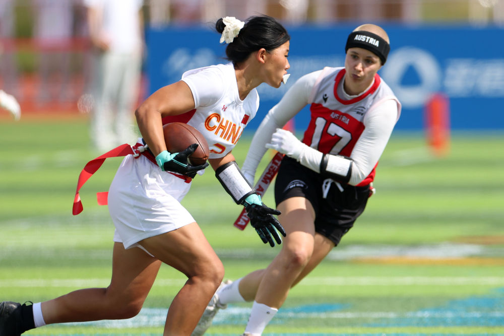 成都世運(yùn)會女子腰旗橄欖球比賽首日,中國隊(duì)上演正式比賽首秀。這支組隊(duì)集訓(xùn)僅3個(gè)多月的“神秘之師”,在首場迎戰(zhàn)世界排名第四的奧地利隊(duì)的比賽中,只以2分惜敗。