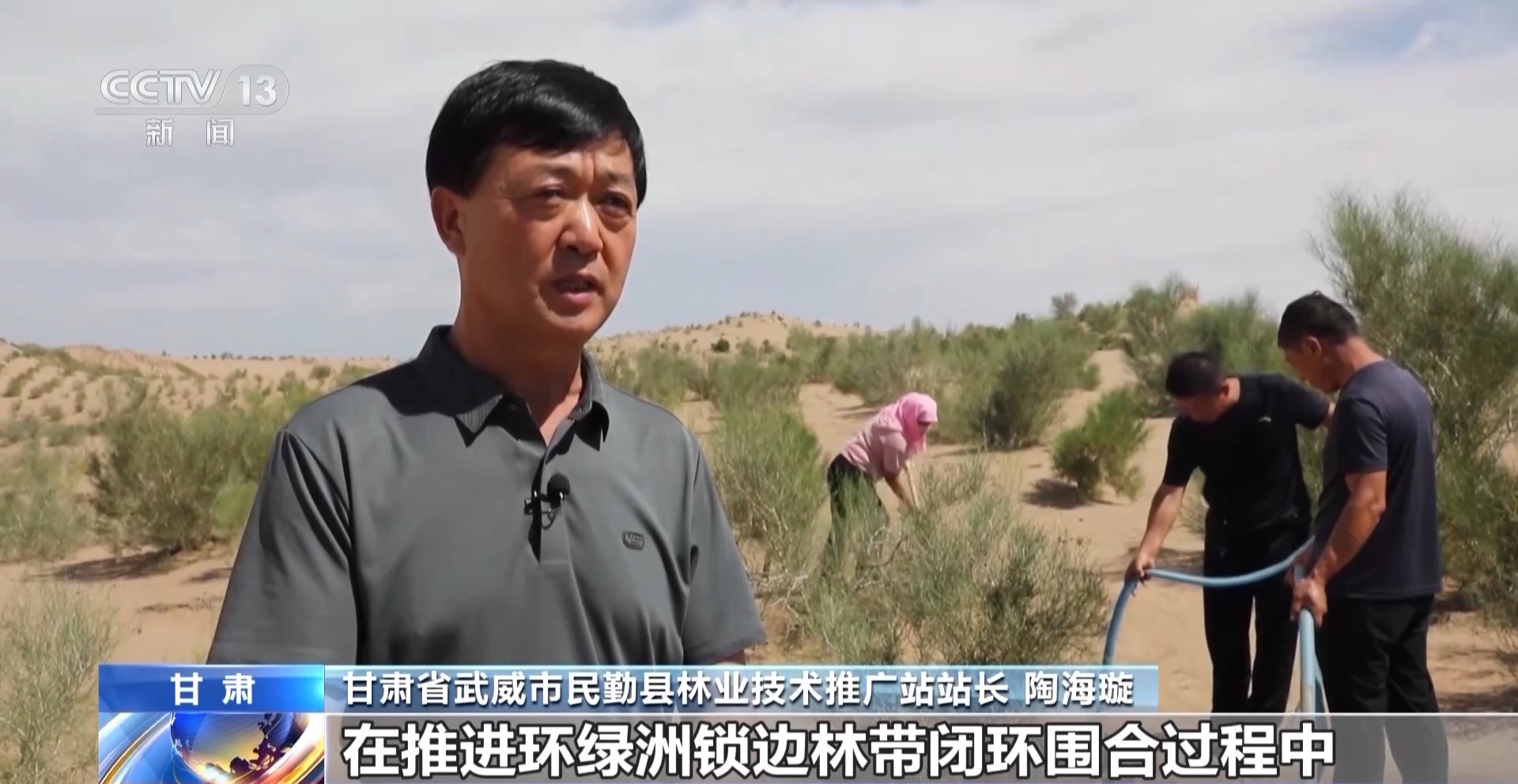 甘肅省武威市民勤縣東壩林業(yè)工作區(qū)站站長 李光道:我們將持續(xù)做好補(bǔ)水、病蟲害防治、防火、禁牧等撫育管護(hù)工作,進(jìn)一步筑牢阻隔兩大沙漠合龍的生態(tài)安全屏障。