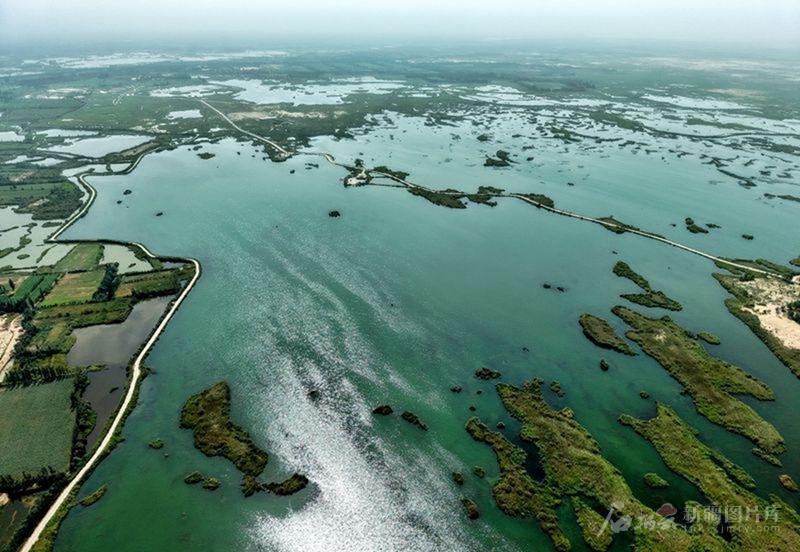 俯瞰塔克拉瑪干沙漠邊緣的拉里昆國家濕地公園(8月6日無人機攝)。天山網(wǎng)-新疆日報記者 鄒懿 攝