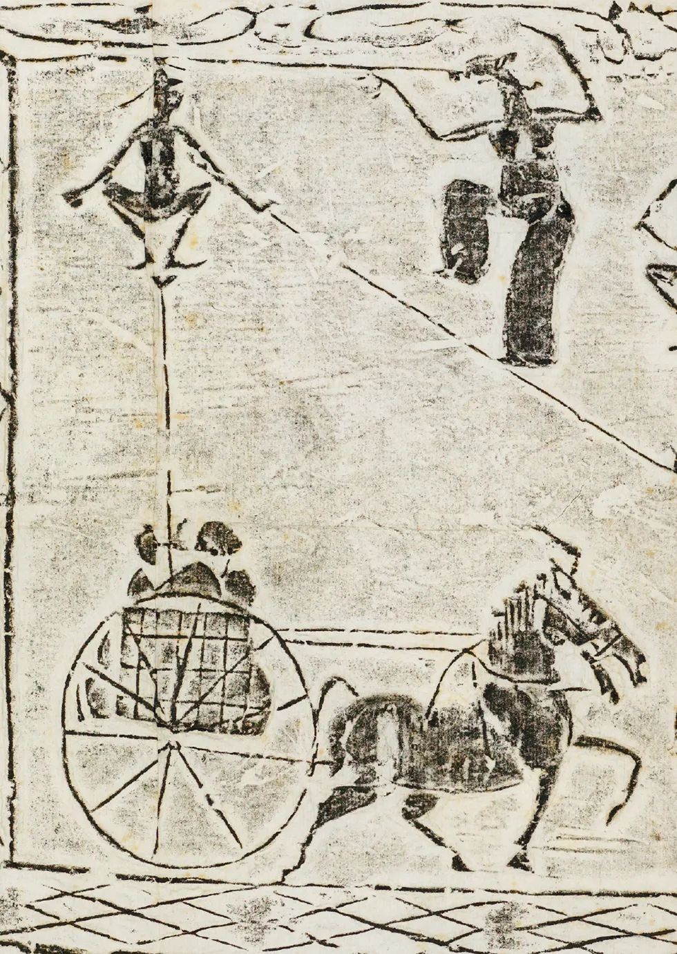 △漢代平索戲車車騎出行畫像磚 中國國家博物館藏