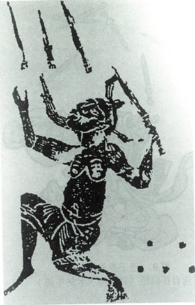 下層右側(cè)的“領(lǐng)隊”騎著馬扛旗前行