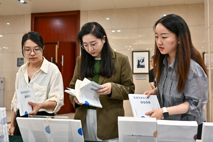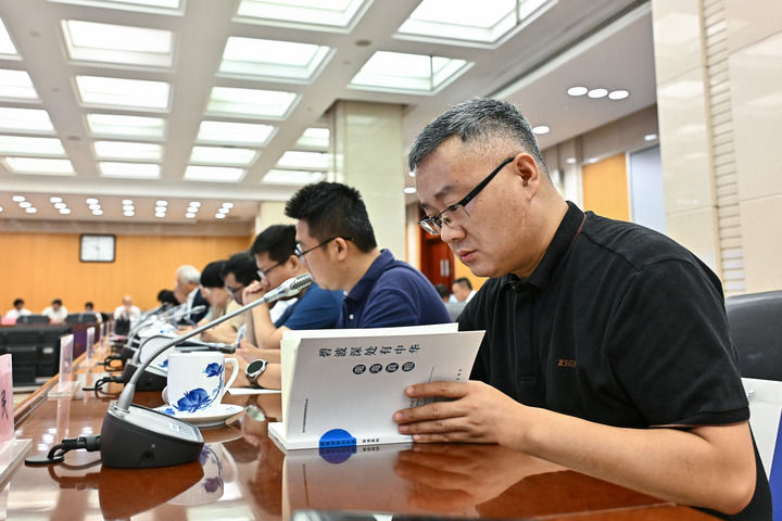 8月21日,與會者在北京舉行的“南海真相”系列智庫報告發(fā)布暨南海問題研討會上閱讀“南海真相”系列智庫報告。新華社記者 李鑫 攝