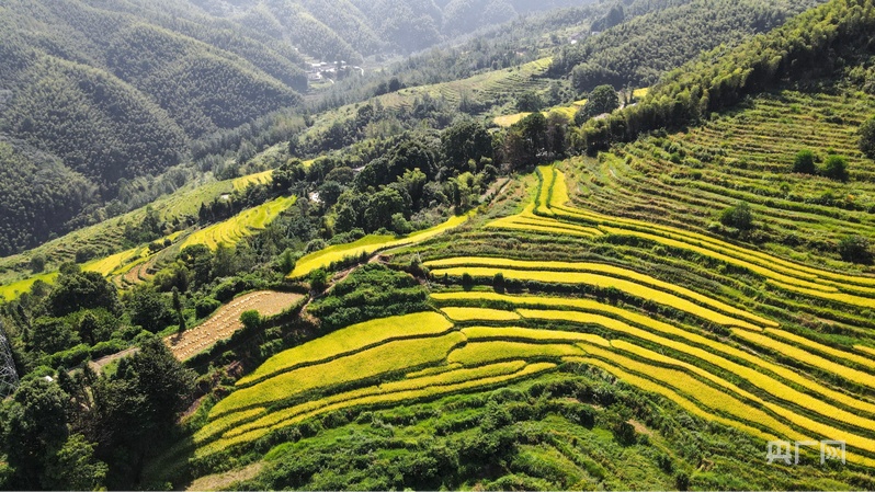 豐收的謝坪村梯田滿目金黃(央廣網(wǎng)記者 王一凡 攝)