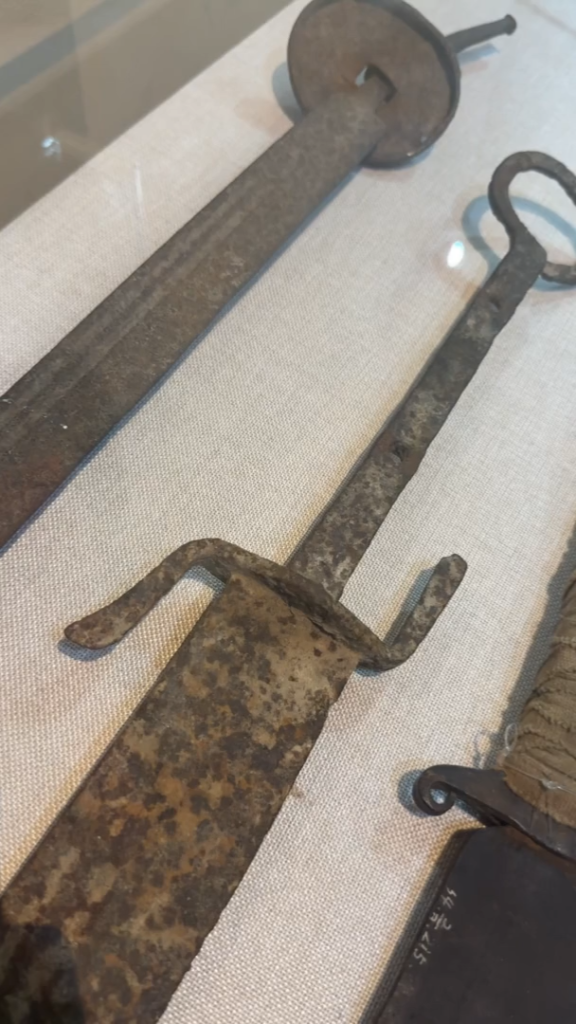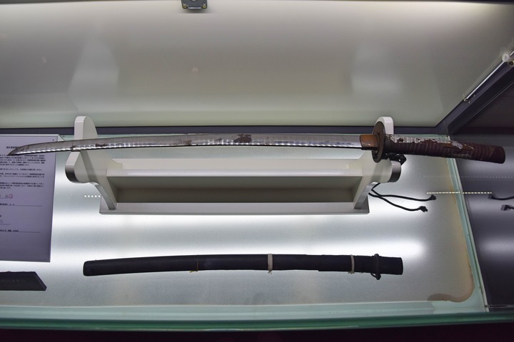 侵華日軍第七三一部隊(duì)罪證陳列館展出的一把獎(jiǎng)勵(lì)解剖技師的軍刀。新華社記者 楊思琪 攝