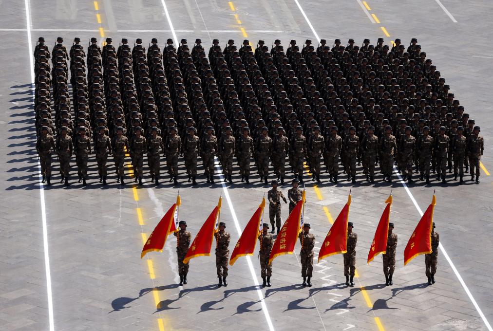 2015年9月3日,中國(guó)人民抗日戰(zhàn)爭(zhēng)暨世界反法西斯戰(zhàn)爭(zhēng)勝利70周年紀(jì)念大會(huì)在北京隆重舉行。這是“平型關(guān)大戰(zhàn)突擊連”英模部隊(duì)方隊(duì)接受檢閱。新華社記者 費(fèi)茂華 攝