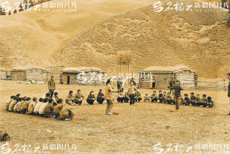 新疆圖片庫里,一張泛黃的老照片,生動(dòng)再現(xiàn)了烏魯木齊縣水西溝鎮(zhèn)廟爾溝中學(xué)的“孩提”時(shí)光:光禿禿的大山腳下,幾座松木搭建起來的簡易房屋,矮趴趴“長”在草場上。遠(yuǎn)處空地上,一群學(xué)生們蹲在地上圍成圈,正在觀看幾個(gè)同學(xué)進(jìn)行跳繩比賽。