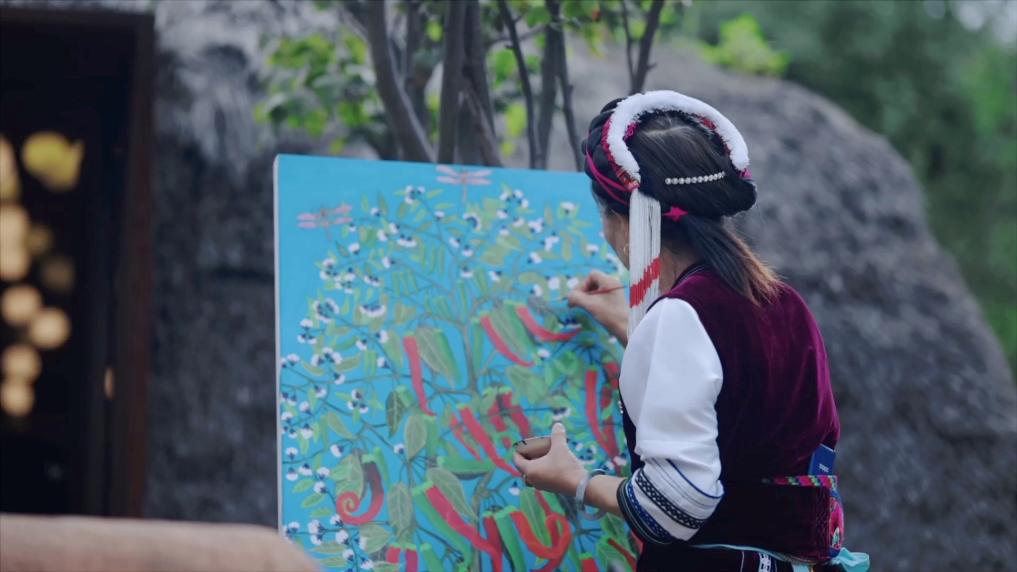 云南大理雙廊鎮(zhèn)伙山村有個農(nóng)民畫社,92歲的王秉秀老人從78歲起拿起畫筆,把繡花的技法用到繪畫上,將田間的耕耘、山間的景致、世代相傳的民俗風(fēng)情融入畫作。