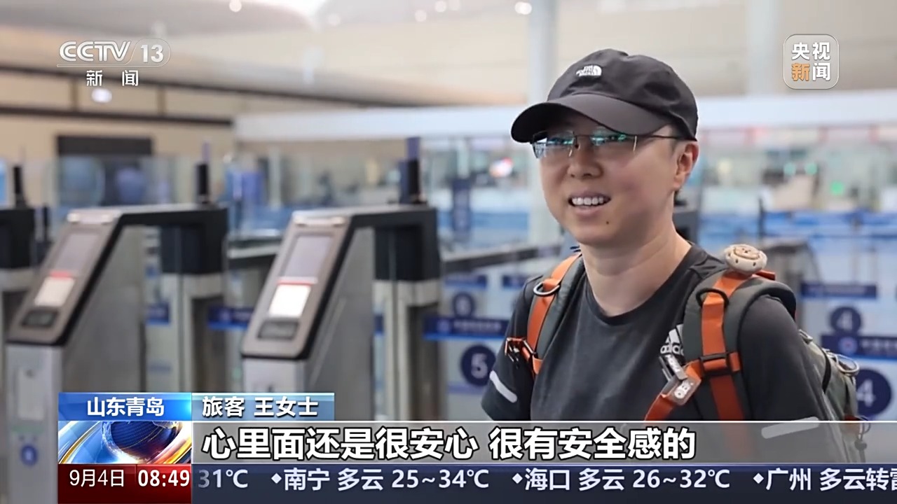 旅客 王女士:就覺(jué)得身后有一個(gè)強(qiáng)大的國(guó)家做支撐,心里面還是很安心、很有安全感的。