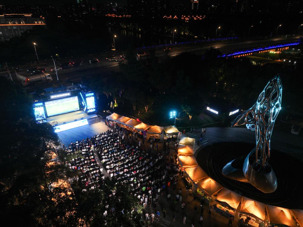 8月17日,在江蘇南京舉行的2025江蘇省城市足球聯(lián)賽第九輪比賽中,南京隊(duì)對(duì)陣鹽城隊(duì)。南京市在部分商場(chǎng)、街區(qū)等地設(shè)置觀賽“第二現(xiàn)場(chǎng)”,使用大屏幕同步直播賽事,同時(shí)設(shè)有游戲互動(dòng)區(qū)、煙火市集區(qū),讓球迷們度過歡樂時(shí)光。新華社記者 季春鵬 攝