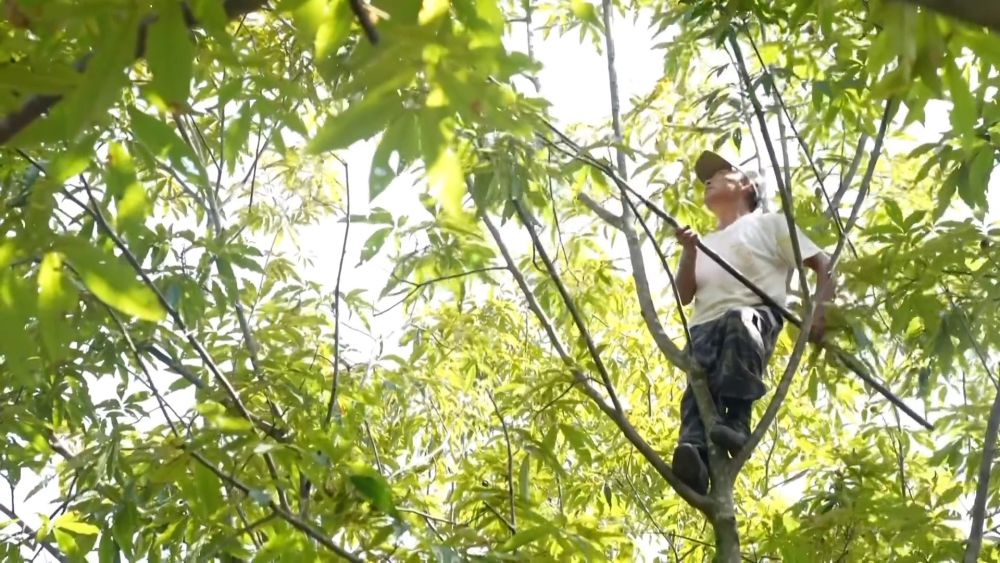 浙江省杭州市臨安區(qū)迎來(lái)了一年一度的山核桃采收季。在昌化鎮(zhèn)后營(yíng)村,林農(nóng)們正忙著采收。