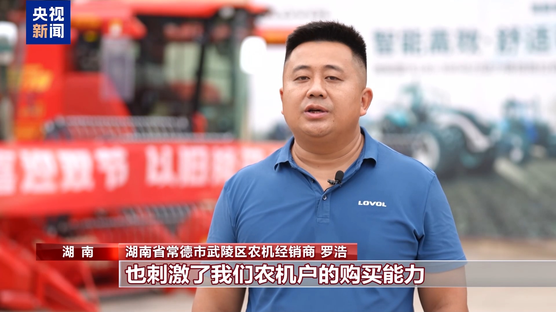 湖南省常德市武陵區(qū)農(nóng)機(jī)經(jīng)銷商 羅浩:以舊換新政策有效地促進(jìn)了我們農(nóng)機(jī)的流通,也刺激了農(nóng)機(jī)戶的購(gòu)買能力。相比于往年,銷售提升了30%。