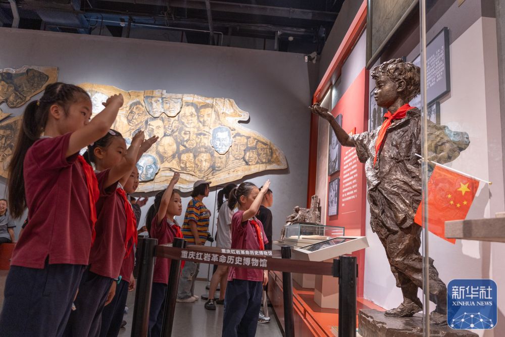 ↑ 10月6日,來自渝北巴蜀小學二年級九班的同學們在重慶歌樂山革命紀念館參觀。新華社記者 陳誠 攝