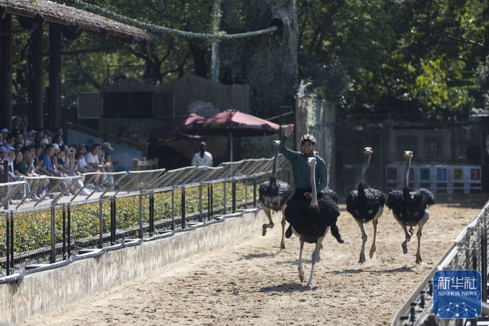 ↑ 10月6日,人們在上海野生動物園觀看奔跑中的鴕鳥。新華社記者 王翔 攝
