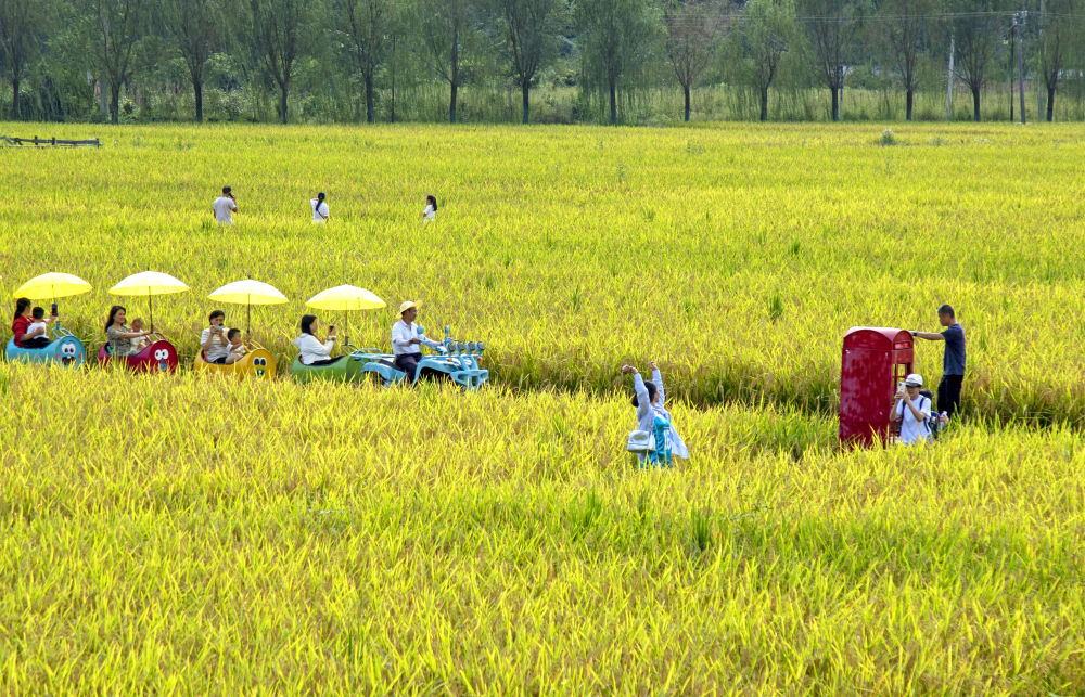 10月5日,游客在湖北省恩施市白果鄉(xiāng)“塘里堂外”農(nóng)文旅田園綜合體游覽。新華社發(fā)(譚華攝)