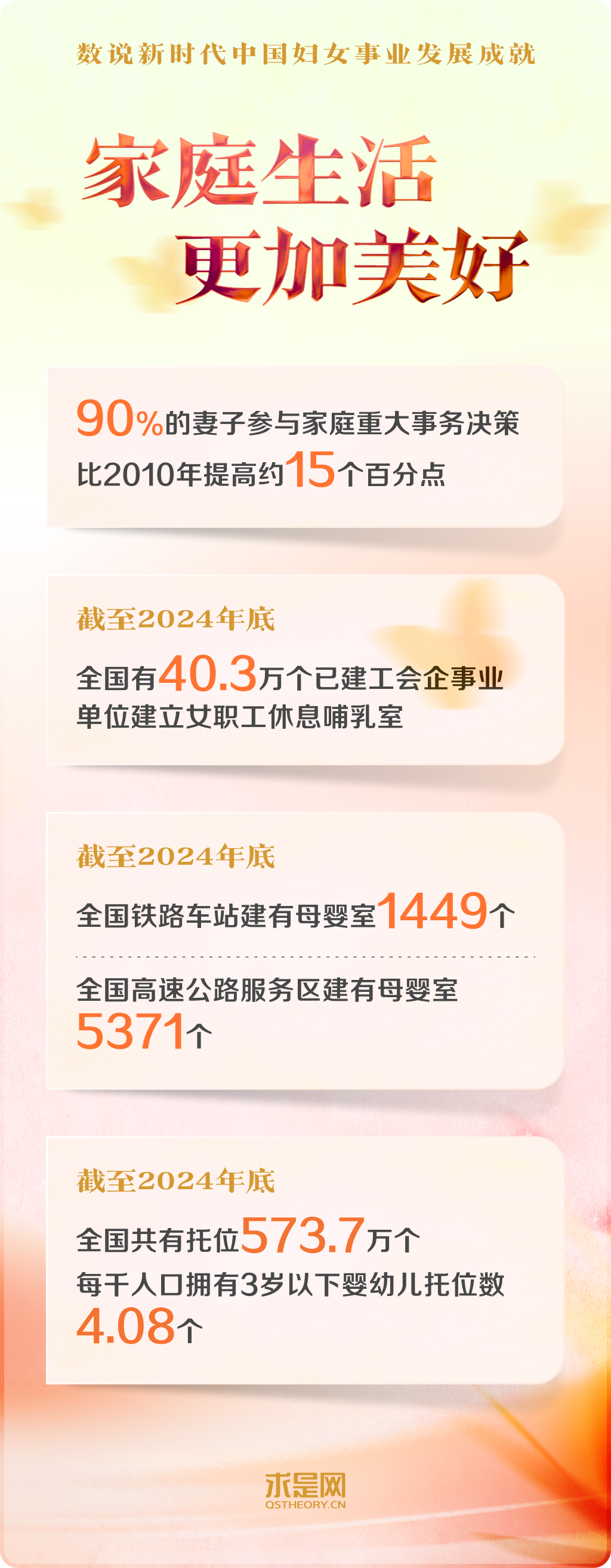 黨的十八大以來,以習(xí)近平同志為核心的黨中央把保障婦女合法權(quán)益、促進(jìn)男女平等和婦女全面發(fā)展,作為中國式現(xiàn)代化的重要內(nèi)容,對婦女事業(yè)發(fā)展作出一系列開創(chuàng)性、全局性、長遠(yuǎn)性的重大決策部署。中國在幼有所育、學(xué)有所教、勞有所得、病有所醫(yī)、老有所養(yǎng)、住有所居、弱有所扶上持續(xù)用力,不斷實(shí)現(xiàn)廣大婦女對美好生活的向往。一組組數(shù)字,記錄下新時代中國婦女事業(yè)跨越式發(fā)展的重大成就。