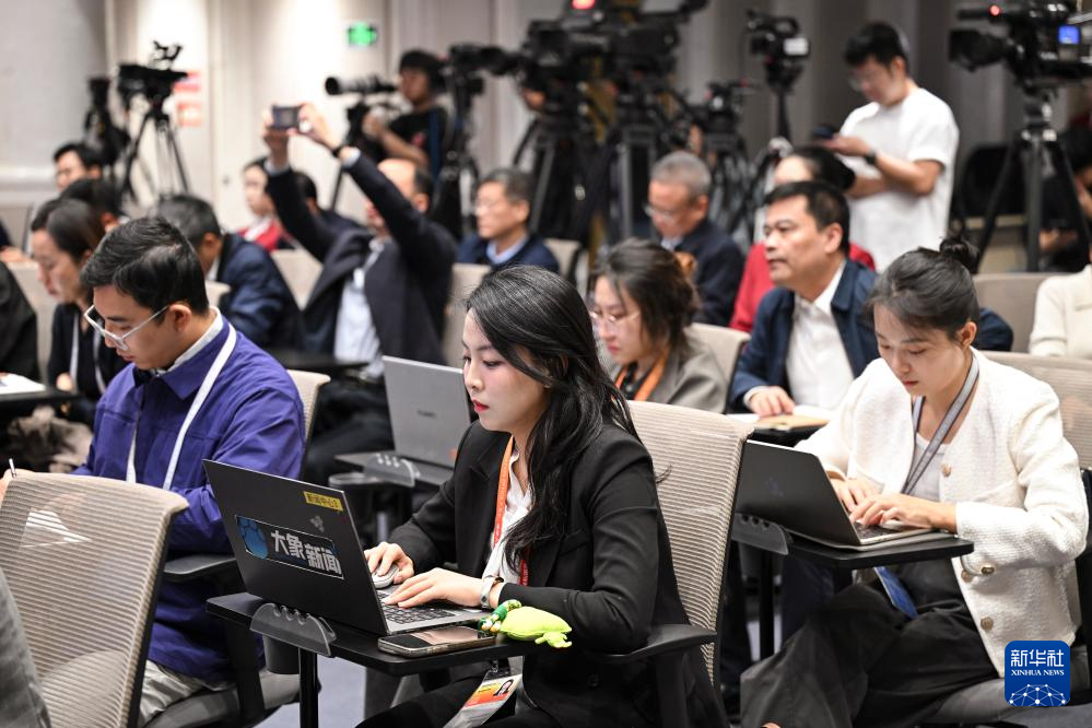 10月14日,國(guó)務(wù)院新聞辦公室在北京舉行“高質(zhì)量完成‘十四五’規(guī)劃”系列主題新聞發(fā)布會(huì),國(guó)家發(fā)展改革委黨組成員、國(guó)家糧食和物資儲(chǔ)備局局長(zhǎng)劉煥鑫,國(guó)家糧食和物資儲(chǔ)備局副局長(zhǎng)錢毅、副局長(zhǎng)秦玉云介紹“十四五”時(shí)期糧食流通改革發(fā)展成效,并答記者問(wèn)。這是記者在現(xiàn)場(chǎng)工作。新華社記者 陳曄華 攝