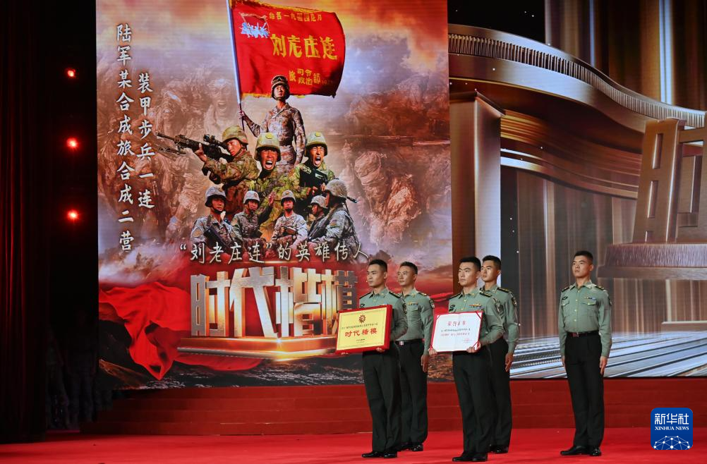 中央宣傳部在授予“時(shí)代楷?!狈Q號(hào)的決定中指出,“劉老莊連”是有靈魂、有本事、有血性、有品德的新時(shí)代革命軍人的優(yōu)秀代表,他們的先進(jìn)事跡充分彰顯了人民軍隊(duì)堅(jiān)定維護(hù)核心、堅(jiān)決聽黨指揮的政治本色和血脈傳承,生動(dòng)詮釋了全軍官兵不畏強(qiáng)敵、敢打必勝的精神品質(zhì),集中展現(xiàn)了新時(shí)代人民軍隊(duì)的好樣子、革命軍人的好樣子。希望廣大黨員干部特別是部隊(duì)官兵以“時(shí)代楷?!睘榘駱?,深入學(xué)習(xí)貫徹習(xí)近平新時(shí)代中國(guó)特色社會(huì)主義思想,深入貫徹習(xí)近平強(qiáng)軍思想,深刻領(lǐng)悟“兩個(gè)確立”的決定性意義,增強(qiáng)“四個(gè)意識(shí)”、堅(jiān)定“四個(gè)自信”、做到“兩個(gè)維護(hù)”,貫徹軍委主席負(fù)責(zé)制,傳承和弘揚(yáng)偉大抗戰(zhàn)精神,堅(jiān)定理想信念、厚植家國(guó)情懷,為如期實(shí)現(xiàn)建軍一百年奮斗目標(biāo)、加快把人民軍隊(duì)建成世界一流軍隊(duì),為以中國(guó)式現(xiàn)代化全面推進(jìn)強(qiáng)國(guó)建設(shè)、民族復(fù)興偉業(yè)而團(tuán)結(jié)奮斗。