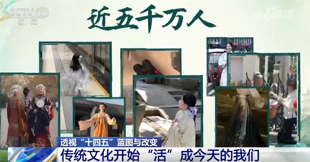 央視網(wǎng)消息:過去,我們在課本里背古詩、學歷史;今天,我們身著漢服走上街頭,在旅行打卡、短視頻創(chuàng)作中重新感受傳統(tǒng)。五千年的文化正在從書頁走向街頭,從展廳走進生活,成為我們?nèi)粘5囊徊糠??!笆奈濉钡奈迥辏屛幕嬲盎睢痹诹水斚?,也“活”進了我們的生活。