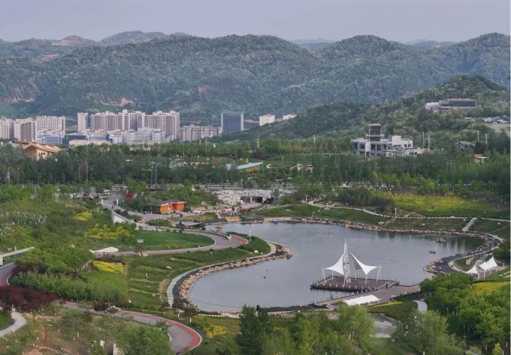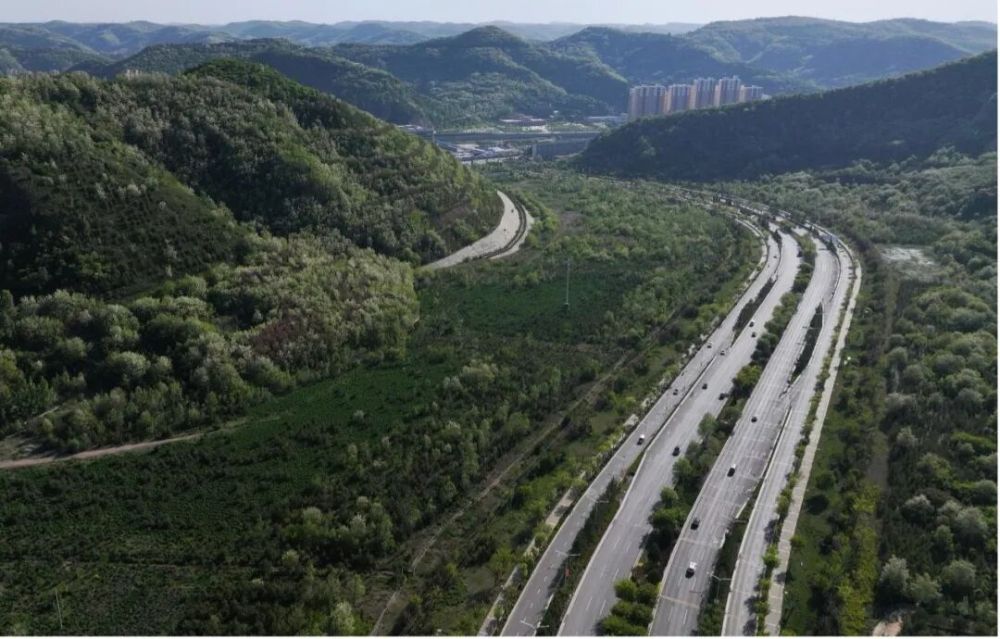 無(wú)人機(jī)視角下的延安滿(mǎn)眼翠綠。新華社記者 張博文 攝
