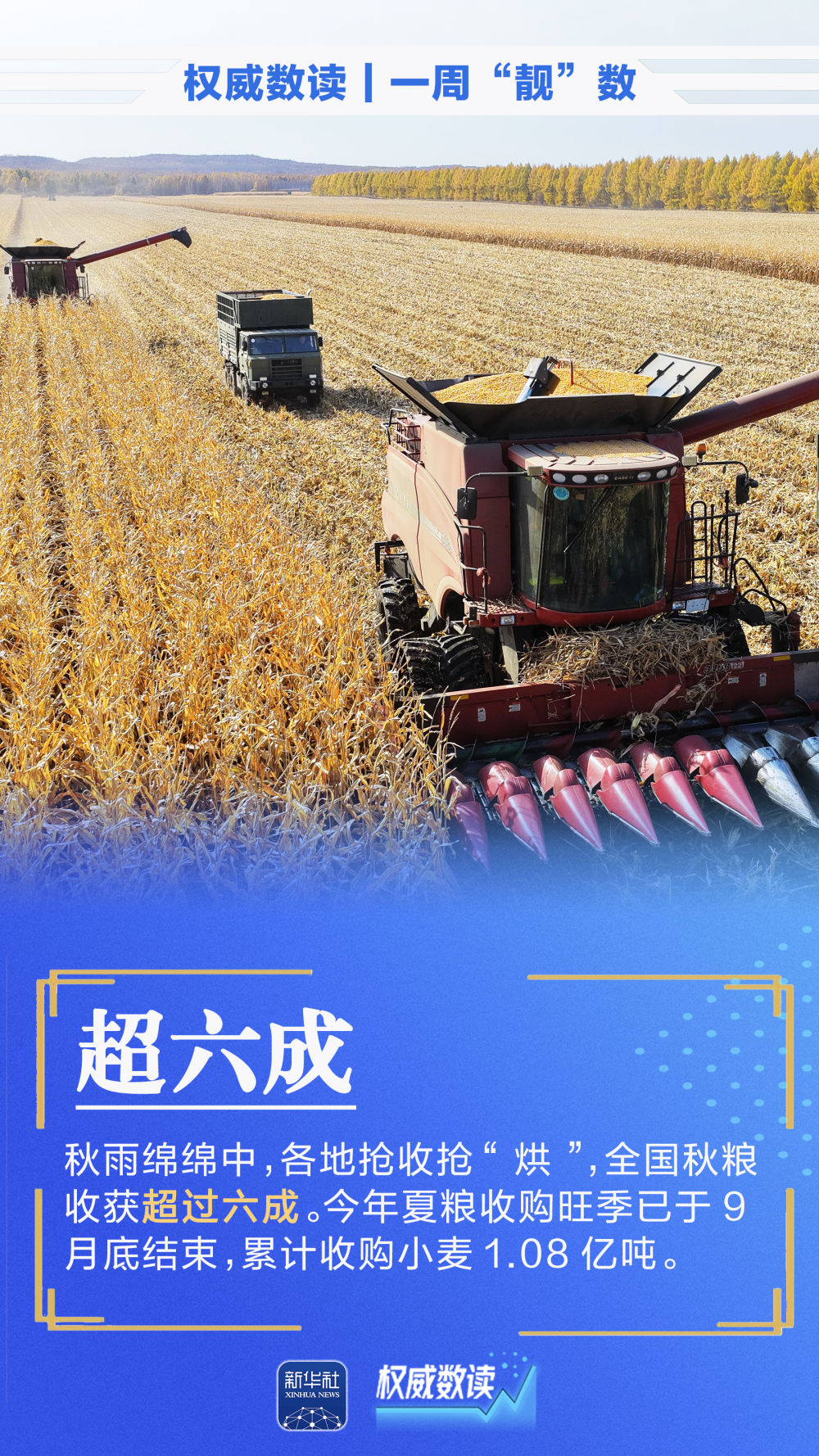 全國(guó)秋糧收獲超過六成;新能源汽車產(chǎn)銷量雙雙突破千萬輛;我國(guó)制造業(yè)增加值每年均超過30萬億元……本周這組數(shù)據(jù),最值得關(guān)注!
