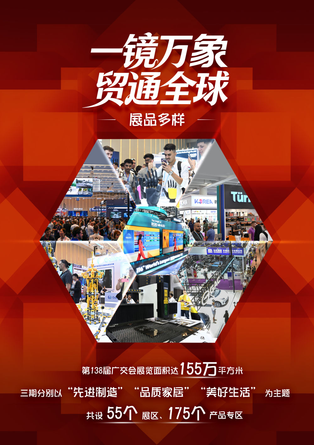 第138屆廣交會(huì)于10月15日至11月4日分三期在廣州舉辦,本屆廣交會(huì)展覽面積達(dá)155萬(wàn)平方米。展位總數(shù)7.46萬(wàn)個(gè),參展企業(yè)超3.2萬(wàn)家,均創(chuàng)歷史新高,約3600家企業(yè)首次亮相。