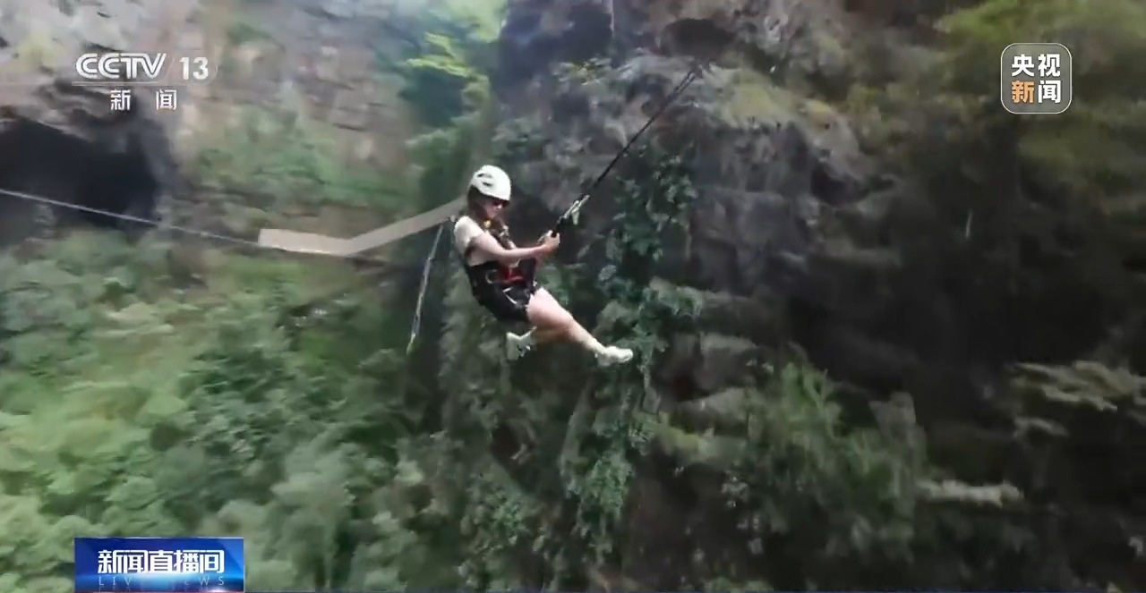 除了用丑萌可愛的物品彰顯個性,旅行“必出片兒”也成為當(dāng)下很多年輕人表達自我的一種方式。今年暑期開始,貴州開陽縣猴耳天坑景區(qū)異常火爆。這里是一處典型的巖溶漏斗,直徑約300米,坑深約280米,依托獨特的地質(zhì)奇觀,當(dāng)?shù)亻_發(fā)出了蹦極、大秋千、探洞等多種極限運動。而就在如此驚險刺激的體驗之下,也要出片!