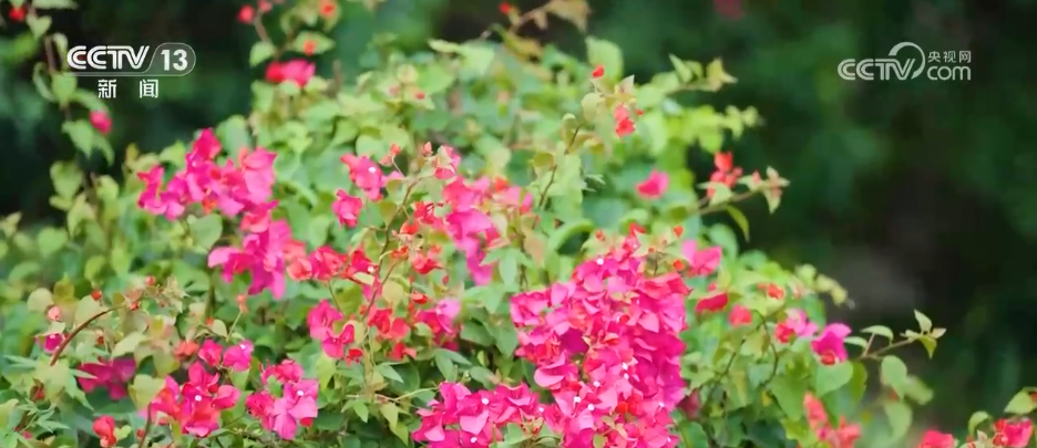 不同于北方秋日的層林盡染,這里的秋多了幾分獨(dú)有的鮮活暖意。漫步悠然園段步道,最先闖入視野的是成片熱烈盛放的三角梅,4萬多株三角梅沿著步道護(hù)欄蜿蜒鋪開,即便已過盛夏,花瓣依舊飽滿鮮亮。
