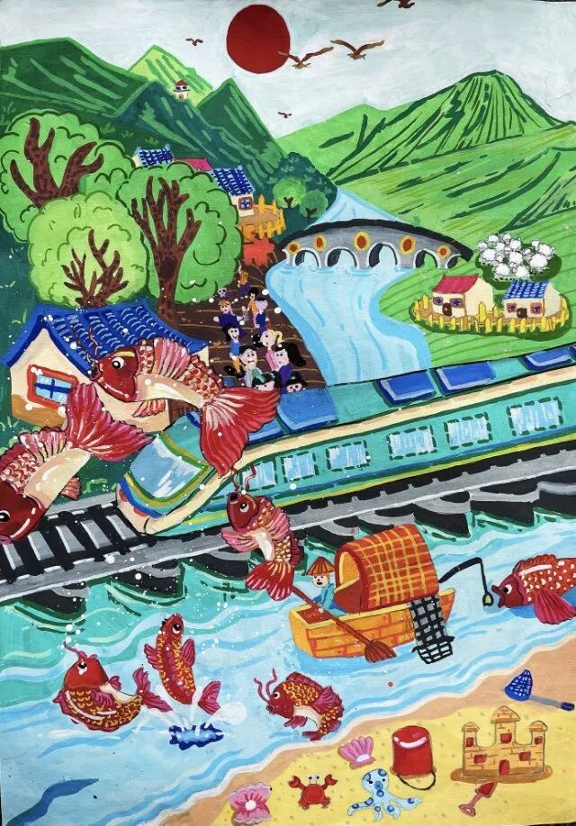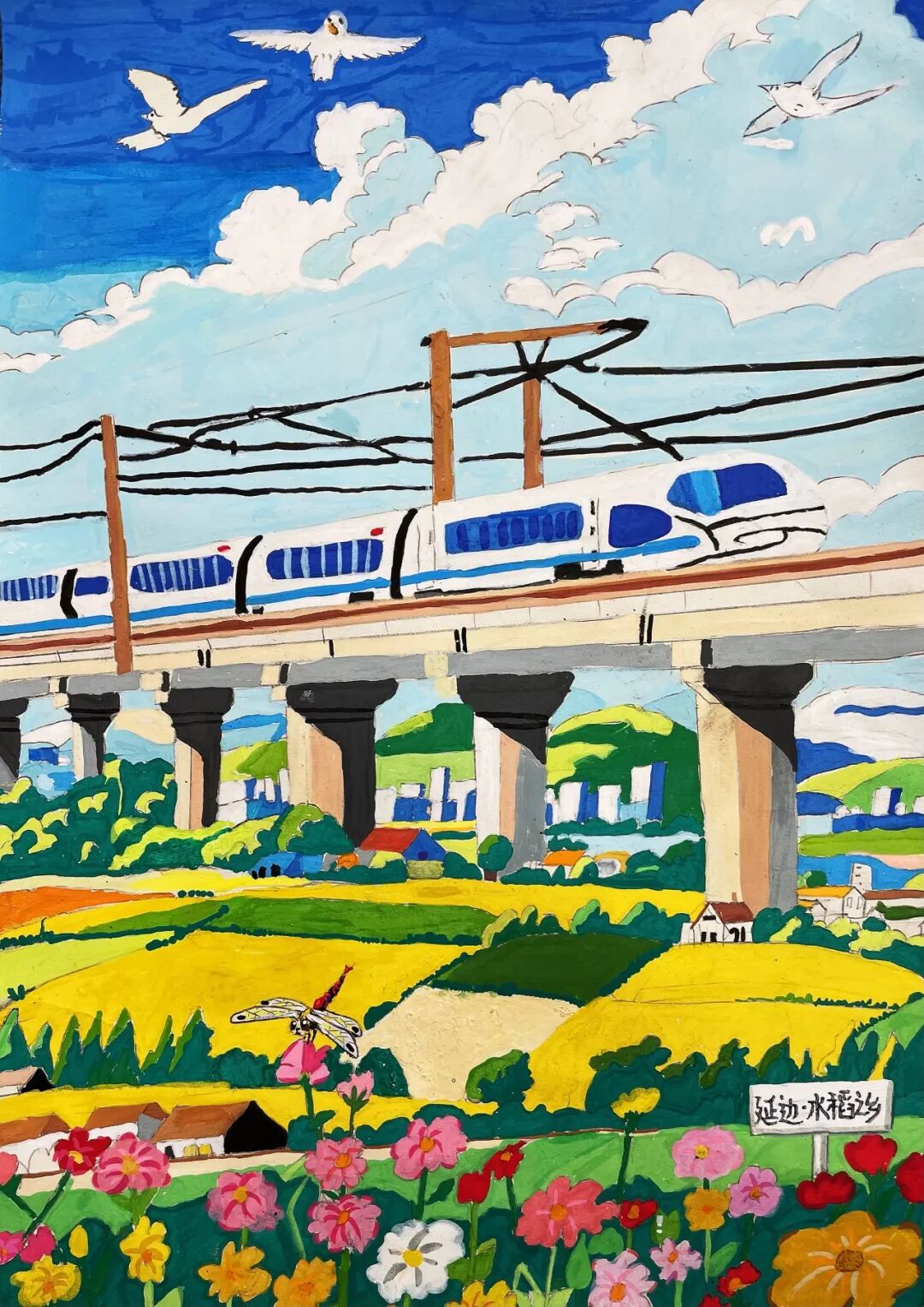 去年暑假,我和爸爸媽媽坐上普速列車去南京看望大爺爺。車窗外,九龍口濕地的蘆葦叢像綠色的波浪,成群的白鷺貼著水面掠過,偶爾還能看見漁民撐著小船在河道里穿梭。建湖特有的水鄉(xiāng)風光漸漸后退,“哐當哐當”的車輪聲卻越來越清晰,仿佛是西塘河的流水聲化作了鋼軌上的旋律。鄰座的老爺爺笑著給我講起故事:“以前去南京,要先坐小船到碼頭,再轉汽車?,F(xiàn)在火車直接開到家門口,建湖和外面的世界更近啦!”他布滿皺紋的手輕輕摸著車窗,眼睛里閃著光。