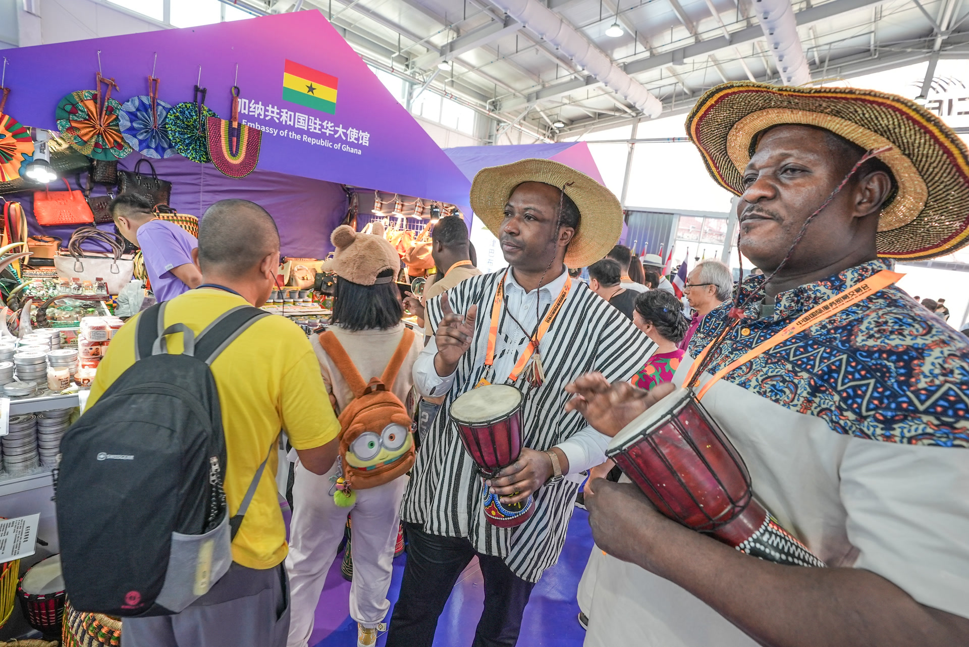 在服貿(mào)會(huì)首鋼園展區(qū),外籍展商在現(xiàn)場(chǎng)表演,展示本國(guó)文化。武亦彬攝
