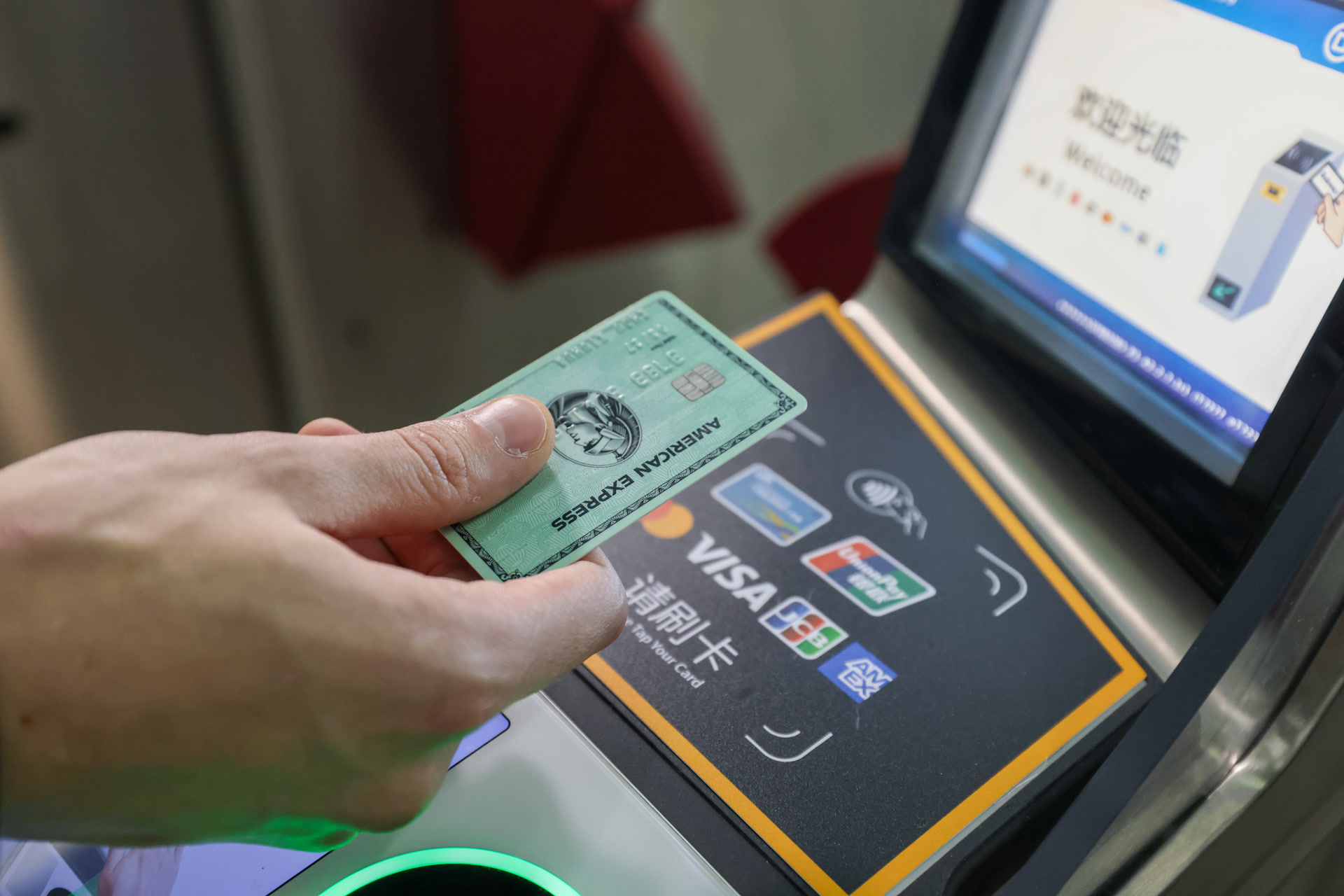 6月15日起,北京城市軌道新增支持境外發(fā)行的JCB卡和境內(nèi)外發(fā)行的美國(guó)運(yùn)通卡非接觸式拍卡過閘及購(gòu)補(bǔ)票功能。北京城市軌道成為全球首個(gè)全網(wǎng)覆蓋中國(guó)銀聯(lián)、萬事達(dá)、維薩、JCB、美國(guó)運(yùn)通五大卡組織支付服務(wù)的城市軌道交通系統(tǒng)。 本報(bào)記者 鄧偉攝(孫宏陽文)