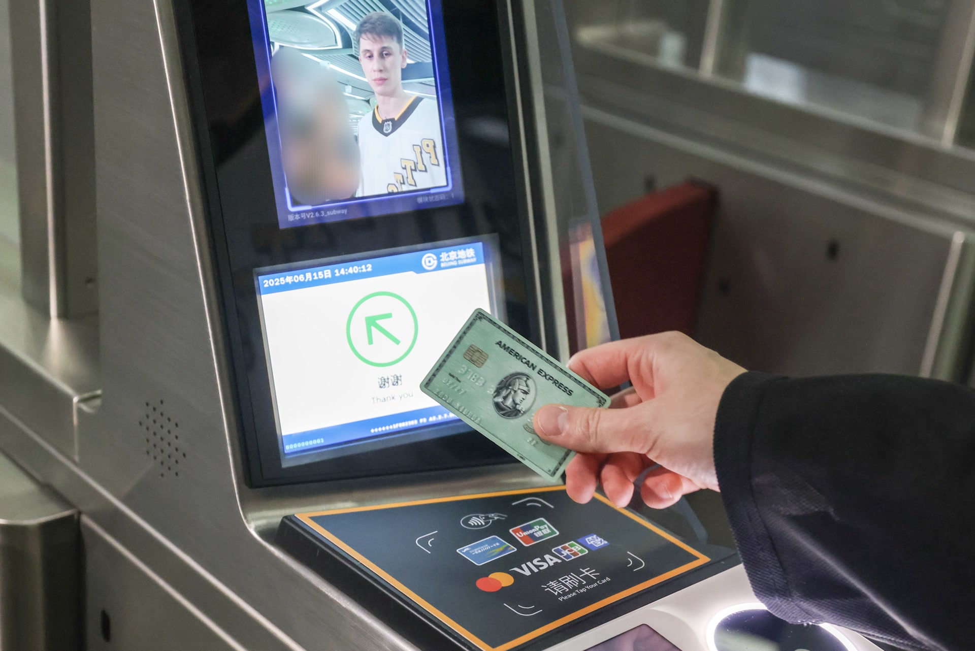 6月15日起,北京城市軌道新增支持境外發(fā)行的JCB卡和境內(nèi)外發(fā)行的美國(guó)運(yùn)通卡非接觸式拍卡過閘及購(gòu)補(bǔ)票功能。北京城市軌道成為全球首個(gè)全網(wǎng)覆蓋中國(guó)銀聯(lián)、萬事達(dá)、維薩、JCB、美國(guó)運(yùn)通五大卡組織支付服務(wù)的城市軌道交通系統(tǒng)。 鄧偉攝