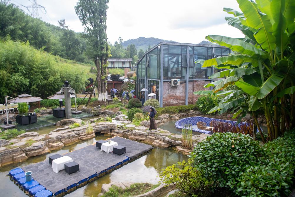 2025年8月15日拍攝的用礦山遺址改造的民宿。近年來,重慶市梁平區(qū)竹山鎮(zhèn)獵神村立足自然資源優(yōu)勢,積極推動林業(yè)相關產(chǎn)業(yè)融合發(fā)展,將原有礦山塌陷區(qū)域進行功能重構(gòu)和空間再塑,打造有山有水的小微濕地群落。新華社記者 唐奕 攝